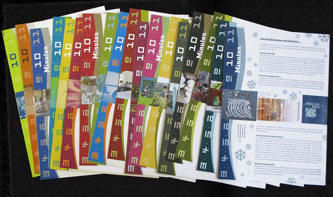 10 Minuten ein periodisch erscheinendes Infoblatt für Mitarbeitende der Heimstätte Bärau. Pro Jahr erscheinen 4 Ausgaben, welche sich in der Farbgebung unterscheiden.