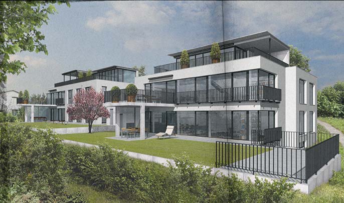 Bilder für Werbung und Verkaufsdokumentation. 2 geplante Villen in Wohlen bei Bern. 3D-Objektmodell, Digitalphotographie und Bildmontagen.
