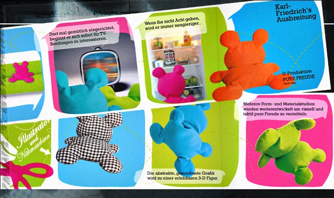 Endlich steht K. F.'s Ausbreitung nichts mehr im Weg: bunt und frech erobert er sich unser Wohnterrain.